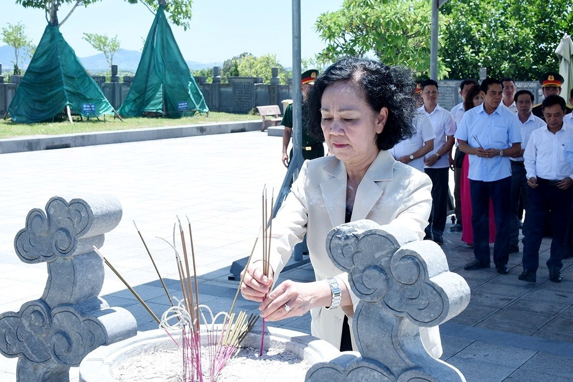 Trước anh linh đồng chí Hà Huy Tập, Thường trực Ban Bí thư, Trưởng Ban Tổ chức Trung ương Trương Thị Mai và đoàn dâng hương bày tỏ lòng biết ơn sâu sắc đến công lao, sự hy sinh anh dũng của đồng chí Hà Huy Tập đối với sự nghiệp đấu tranh giải phóng dân tộc.